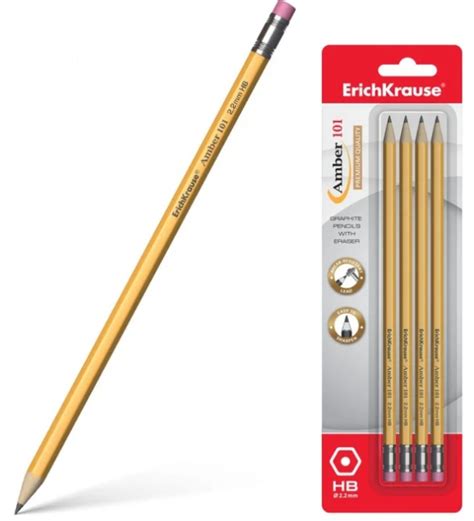 Карандаш чернографитный с ластиком, набор 4шт.